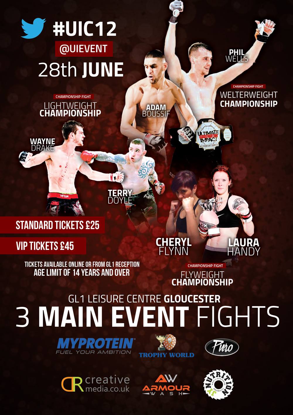Next event is ULTIMIATE IMPACT CAGEFIGHTING 12 on June 28th at GL1 LEISURE CENTRE GLOUCESTER – INCLUDING 3 TITLE FIGHTS