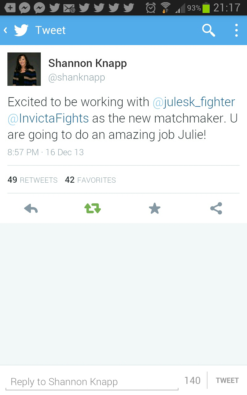 “Of course were gonna go to war. I think were gonna show two different styles and that’s going to go well together. It’s going to be tricky because she is very unorthodox and I’m not I think our different styles will match up really good. I’m on enemy turf. I’m going into Kansas City. Its going to be fun. I like being the underdog and I like going to someone elses turf to fight. I like to be the underdog as I like to surprise people. Its like when I went to Russia I had no chance of winning on paper but totally fucked her up! Then I was like, I like this, I like being the under dog, I like coming in there – Fuck things up then walk away 🙂